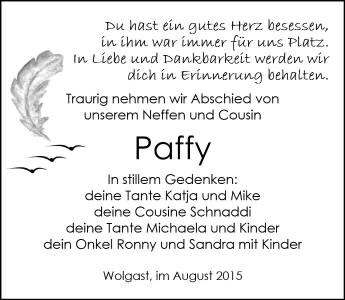 Wie ein Blatt vom Baume fällt geht ein Mensch von dieser Welt.
